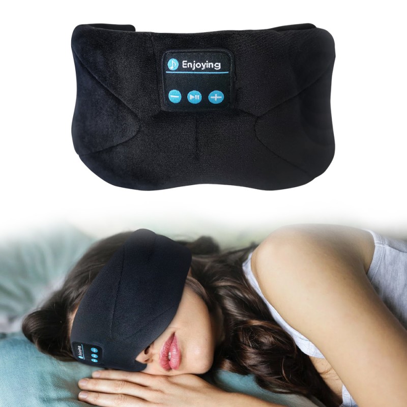 قناع العين بتقنية البلوتوث من القطن الأسود ذو العلامة الجانبية