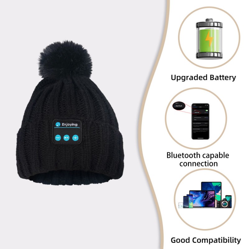تتميز سماعات رأس بلوتوث بيني هات باللون الأسود مع كرة بمكبر صوت لاسلكي وميكروفون يوفر جودة صوت عالية الوضوح لتجربة مكالمات واستماع للموسيقى غامرة بدون استخدام اليدين. تأتي قبعة بيني مع سماعة رأس بلوتوث 5.3 تضمن التوافق مع معظم الأجهزة التي تدعم تقنية البلوتوث و يبسط العملية.