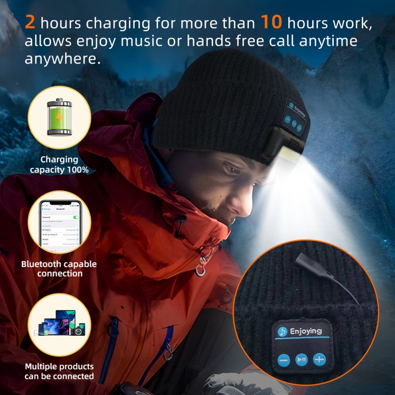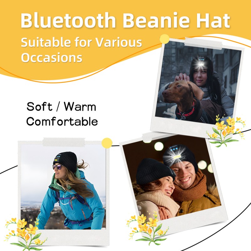 تتميز سماعات الرأس الناعمة التي تعمل بتقنية البلوتوث بيني هات باللون الأسود والمزودة بإضاءة بمكبر صوت لاسلكي وميكروفون يوفر جودة صوت عالية الوضوح لتجربة مكالمات واستماع للموسيقى غامرة بدون استخدام اليدين. تأتي قبعة بيني مع سماعة رأس بلوتوث 5.3 تضمن التوافق مع معظم الأجهزة التي تدعم تقنية البلوتوث الأجهزة وتبسيط العملية.