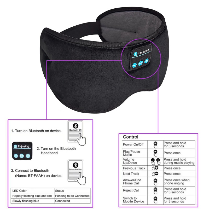 قابل للإزالة وقابل للغسل: إن الجسم الرئيسي من قناع العيون بلوتوث القطن الأسود القابل للفصل ، سهل التنظيف والحفاظ على صحية.
