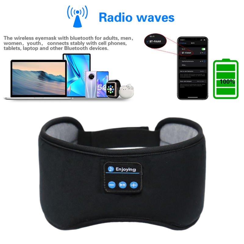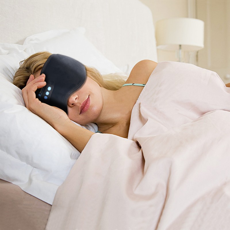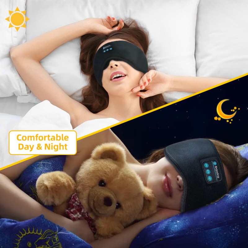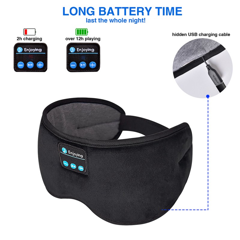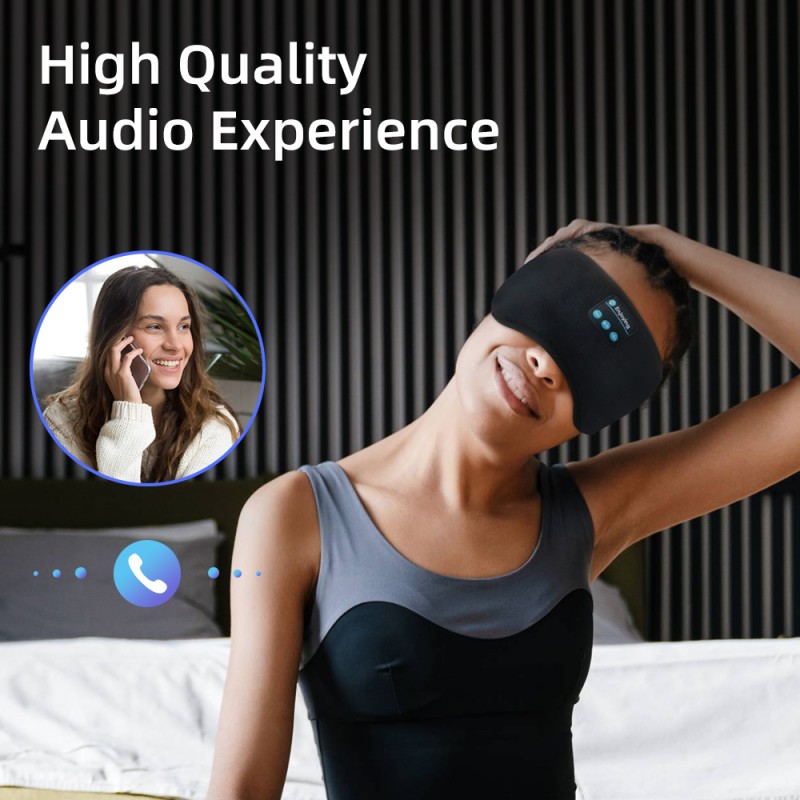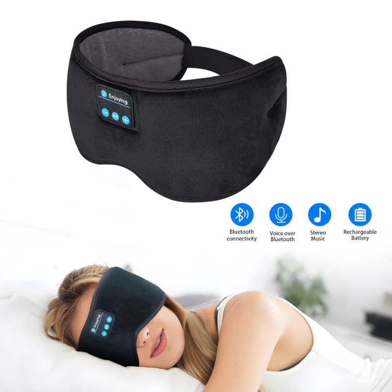 قناع العين بتقنية البلوتوث من القطن الأسود ذو العلامة الجانبية