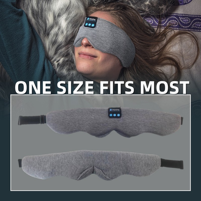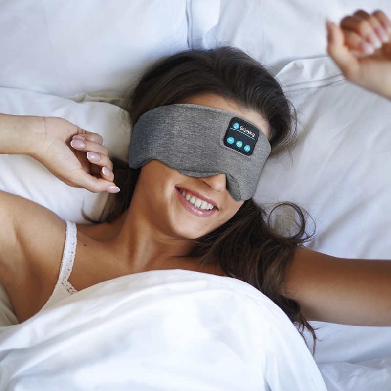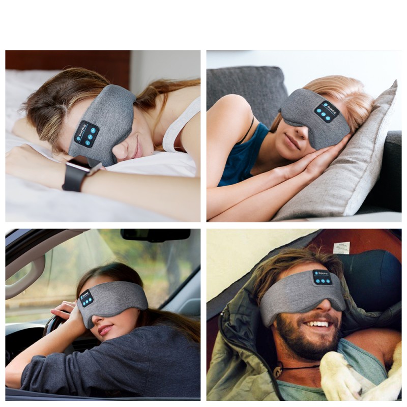سماعات أذن قطنية تعمل بتقنية البلوتوث وقناع العين للنوم باللون الرمادي