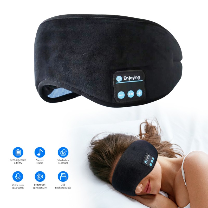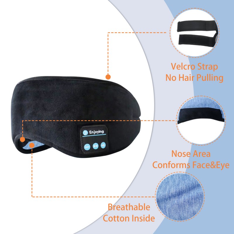 قناع العين بتقنية البلوتوث من القطن الأسود ذو العلامة الجانبية